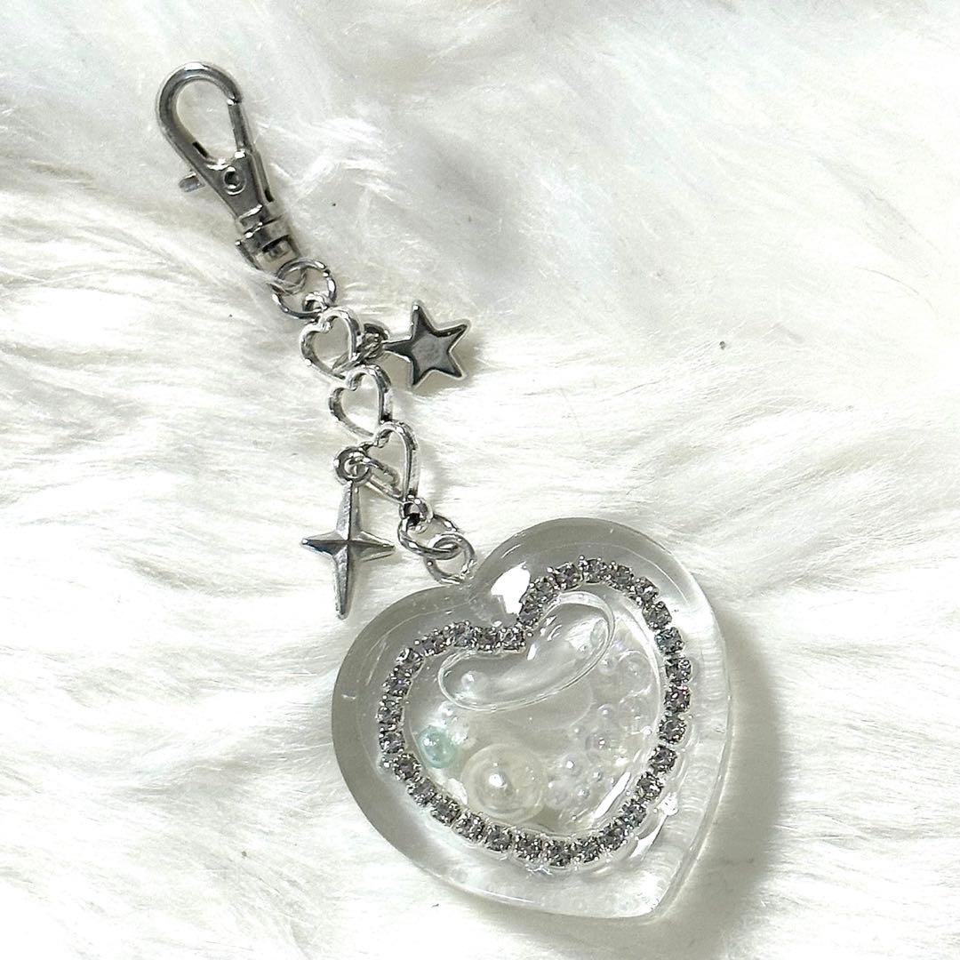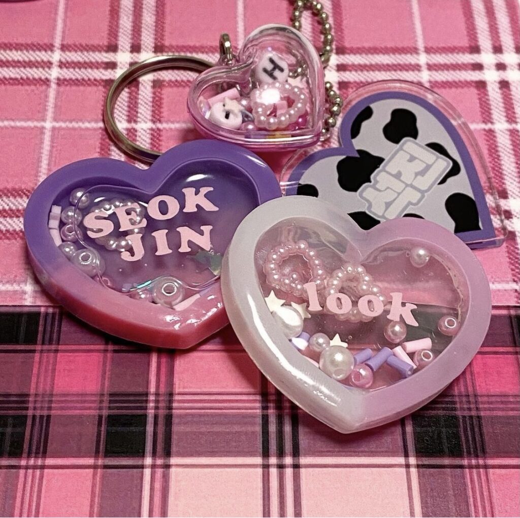 レジン ダイソーさんのハート型モールドを使って、夢かわなシャカシャカキーホルダーを作りました resin resinaccessory レジンキーホルダー レジン作り方 レジンアクセサリ。