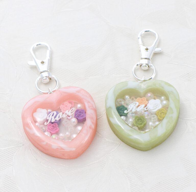 オイル入りハートシェイカーキーホルダーの作り方めいのハンドメイドアクセサリーブログ。