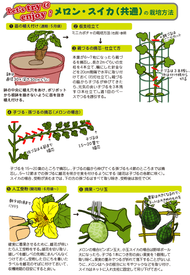 小さな実が日に日に育つ姿にワクワク!「鉢で育てる、カボチャ!メロン!! スイカ!!!」花ごころメディア花ごころ。