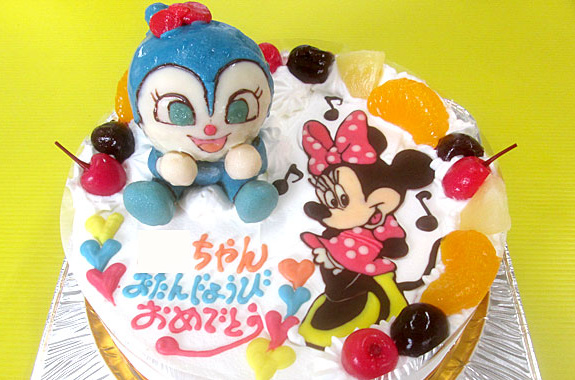 こきんちゃんとミニーマウスのケーキオリジナルケーキ『おぐに』電車・車・キャラクター・似顔絵ケーキ宅配通販。