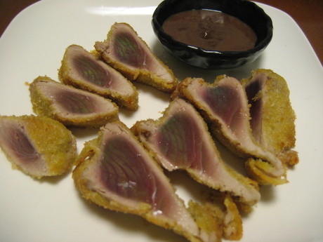 ソウダガツオのフライ 三種 カツオ、カツオとチーズ、カツオと大葉 、アボカドディップ添え、美味しいモノ・出会いモノBlog。