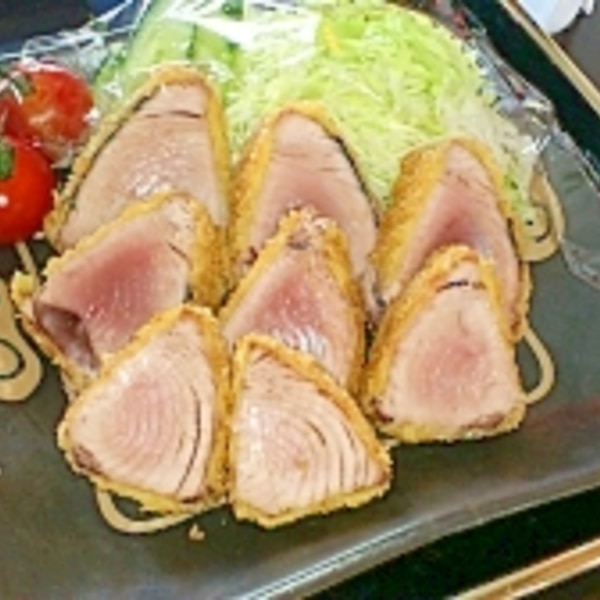 カツオ 旬 揚げ物生カツ 旬❗️戻りカツオ『生カツ』サラダの作り方サックリ衣と中のレア感がたまらなく美味しいですよ。