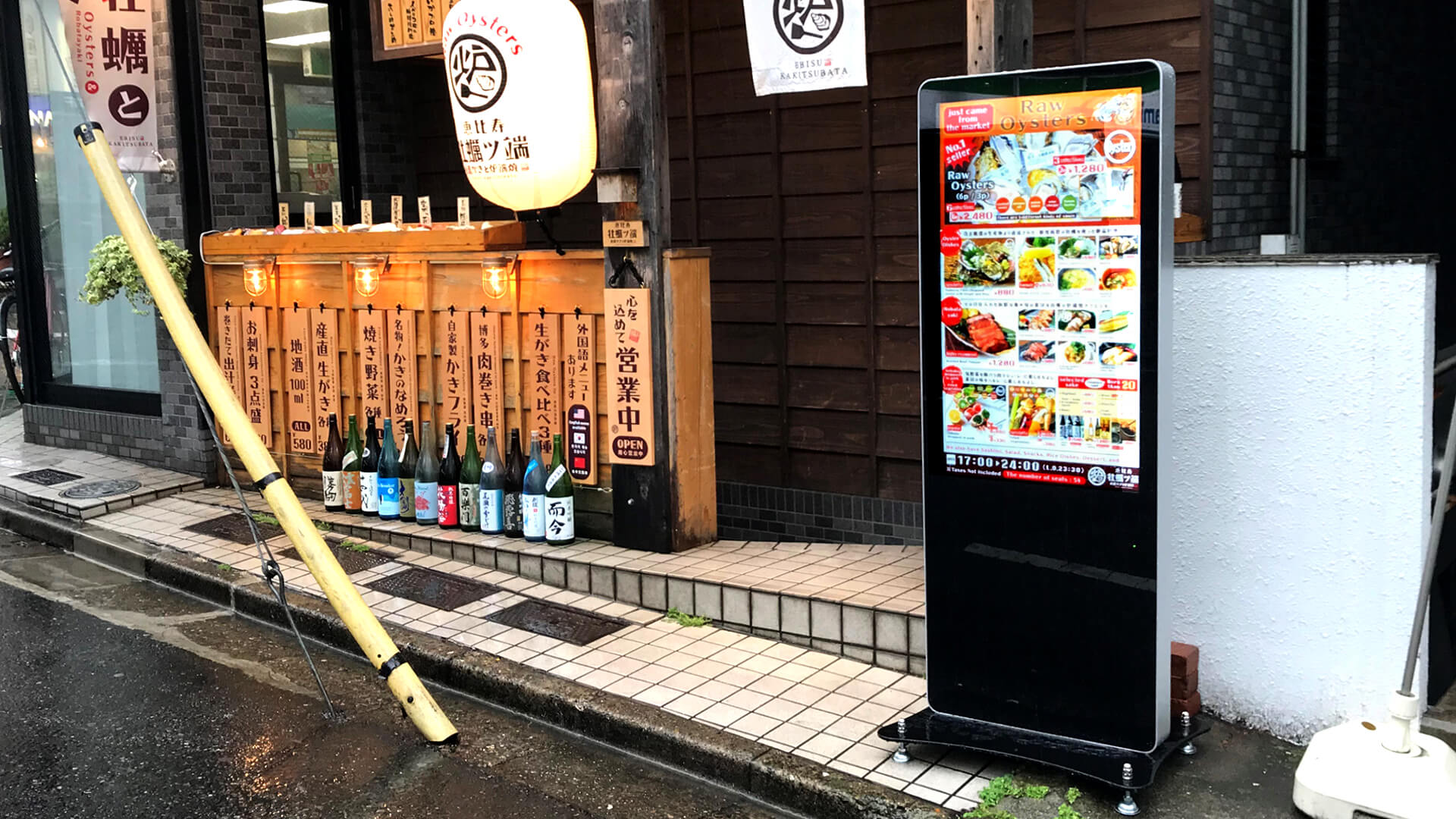 東京牡蠣ツ端様導入事例デジタルサイネージ株式会社NSS。
