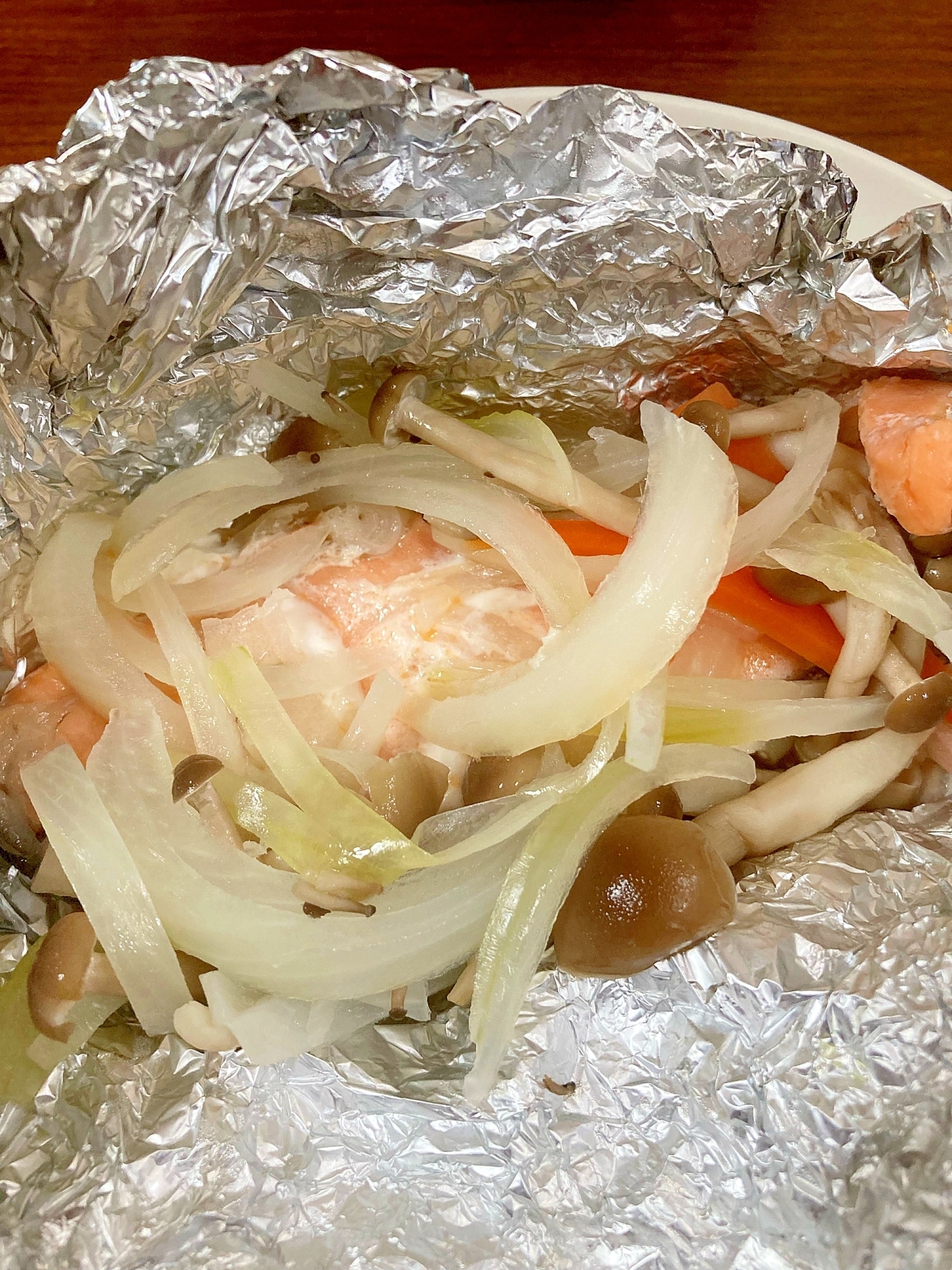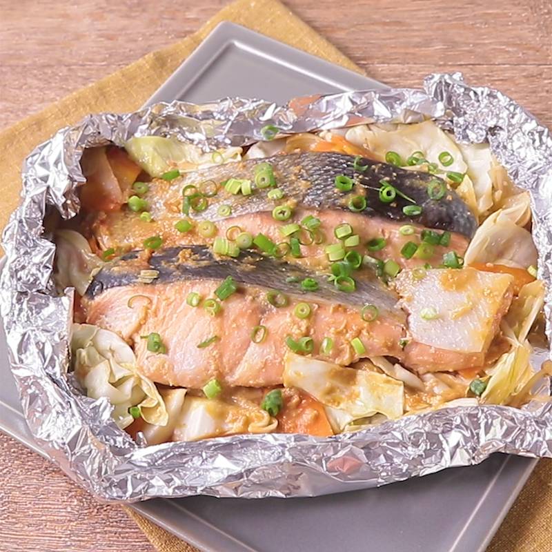 凍ったまま調理スタート!鮭のちゃんちゃんホイル焼き。