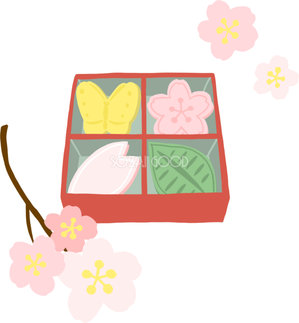 かわいい満開の桜と和三盆 和菓子 イラスト無料 フリー 83382素材Good。