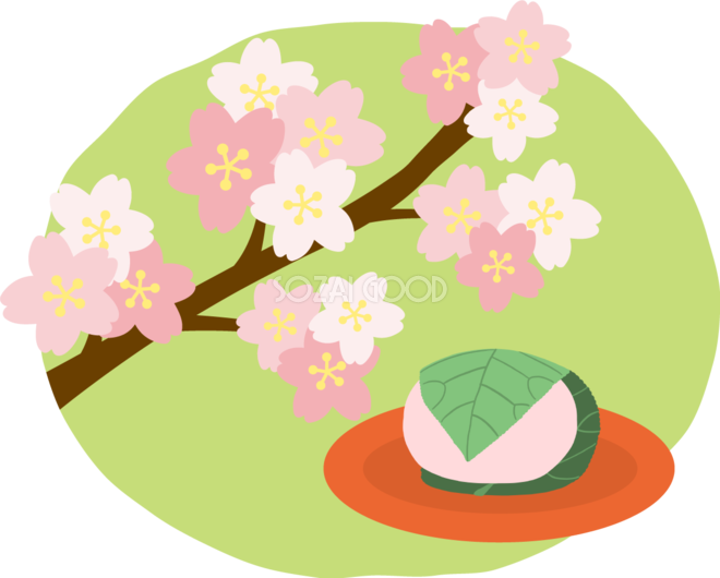 かわいい満開の桜と桜餅 和菓子 イラスト無料 フリー 83378素材Good。