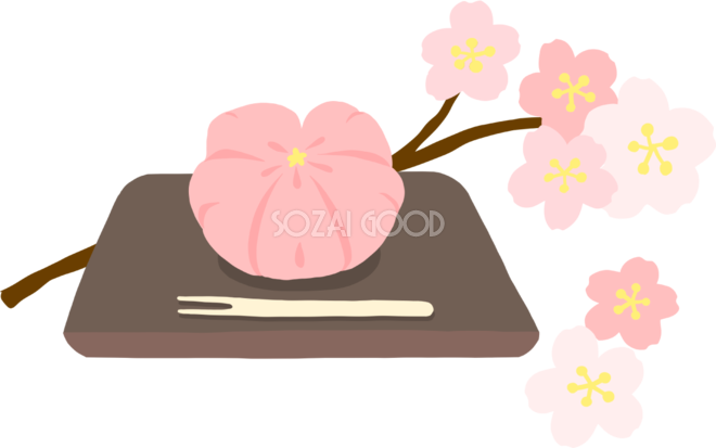 かわいい満開の桜と生菓子 和菓子 イラスト無料 フリー 83380素材Good。
