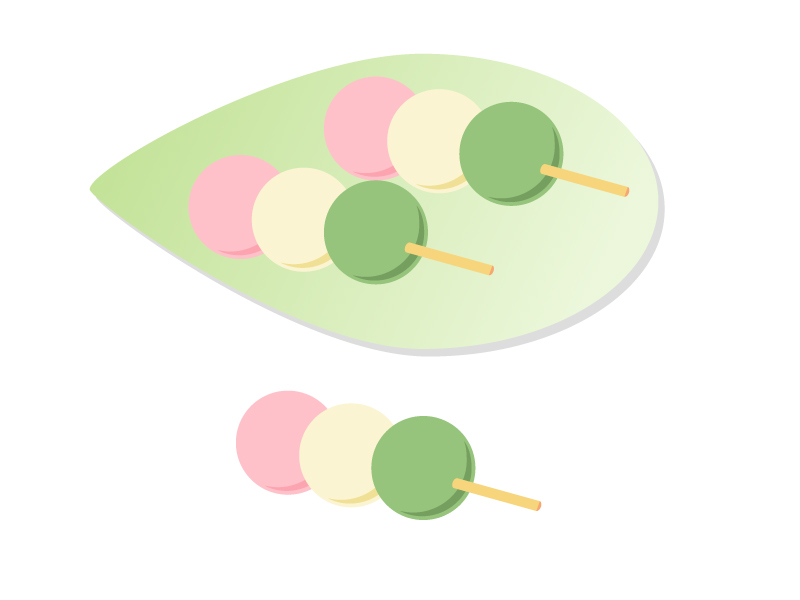 3色団子・和菓子イラスト素材イラスト無料・かわいいテンプレート。