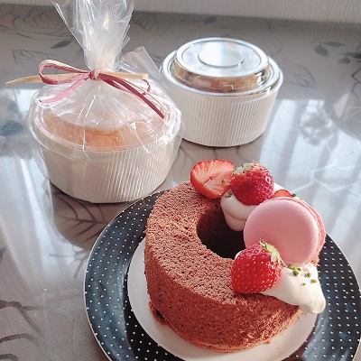 目的、用途に応じてシフォンケーキの型を変えると楽しい。20㎝や17㎝の生地量に合わせてシフォンケーキの型選び。ミニサイズも可愛い米粉・お米の シフォンケーキ専門ショップ開業の支援・独立サポートならkonayuki。