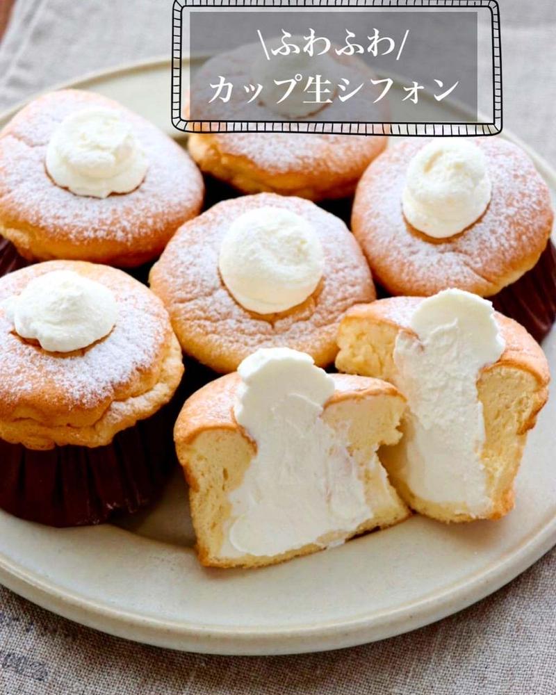 \セリアのシリコン型でシフォンケーキ作り🫖🍑 , 卵1つでふわふわ紅茶シフォンケーキを焼きました🥚,私の動画を見て、実際に「セリアで買ってきました~!!」と言ってくださった方も🫣✨️,手軽に揃えられる材料で作れるので、お菓子作り初心者の方でも挑戦しやすいレシピとなっております🫶🏻 , しっとりふわっふわです🥹🤎,。