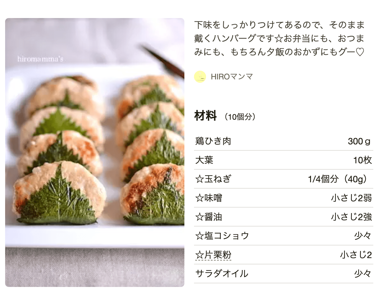 人気1位 大葉ハンバーグ殿堂入りレシピBEST10 つくれぽ1000超え つくれぽ1000並の人気レシピ集。