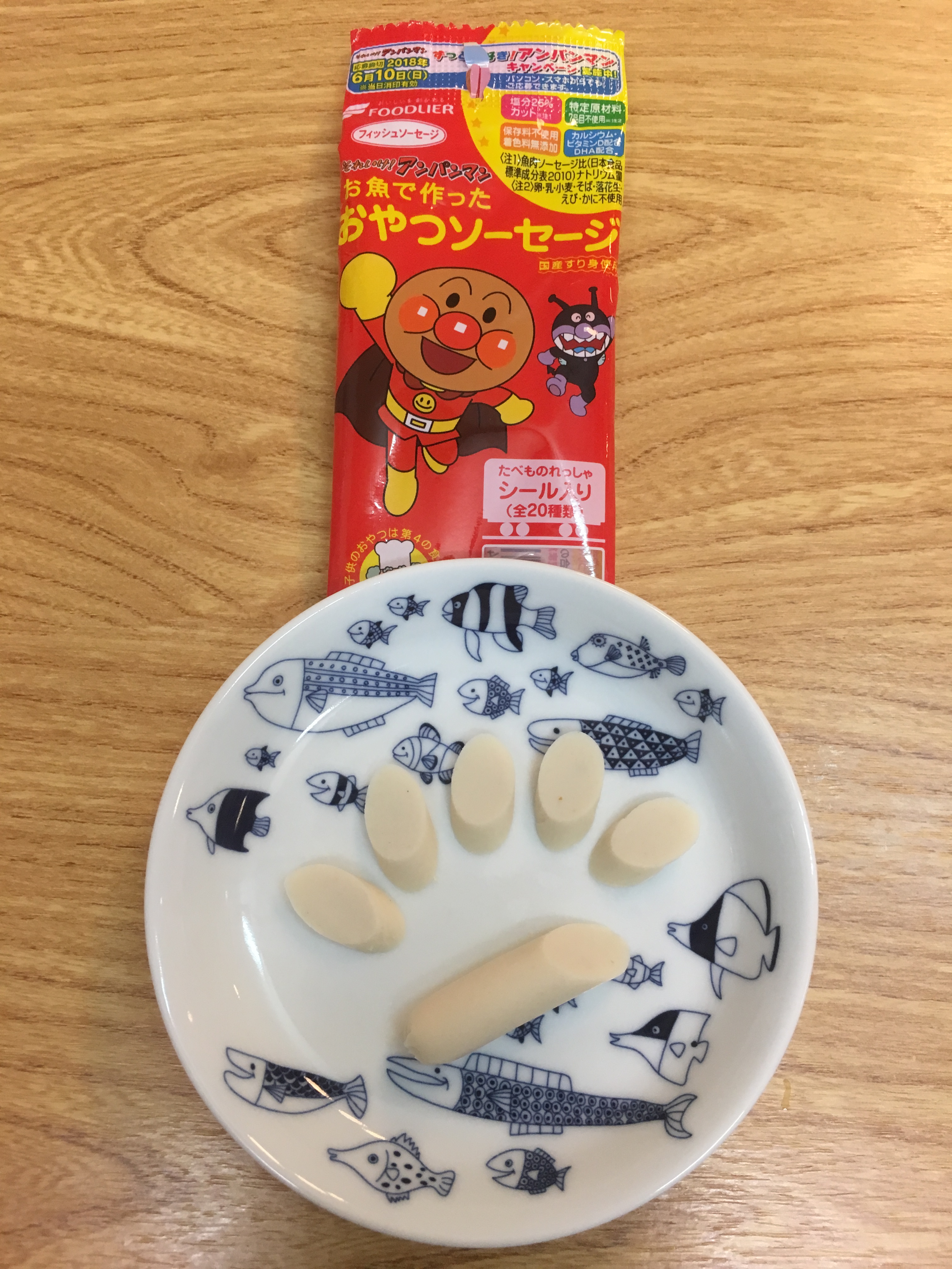 アンパンマンの魚肉ソーセージは1歳から食べられるのでおやつにおススメ。
