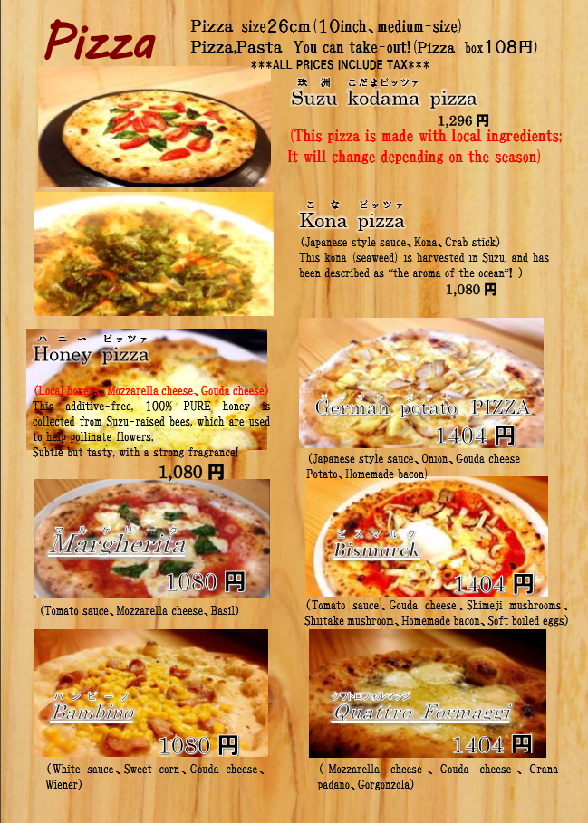 ENGLISH MENUイタリアン・カフェ こだま https:pizza-kodama.webu.jp。