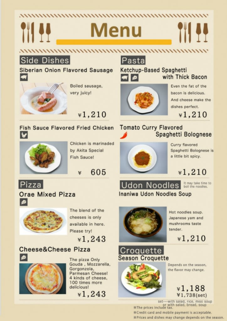 レストラン英語メニューデザインのポイント&便利なテンプレート紹介つくるデポ。