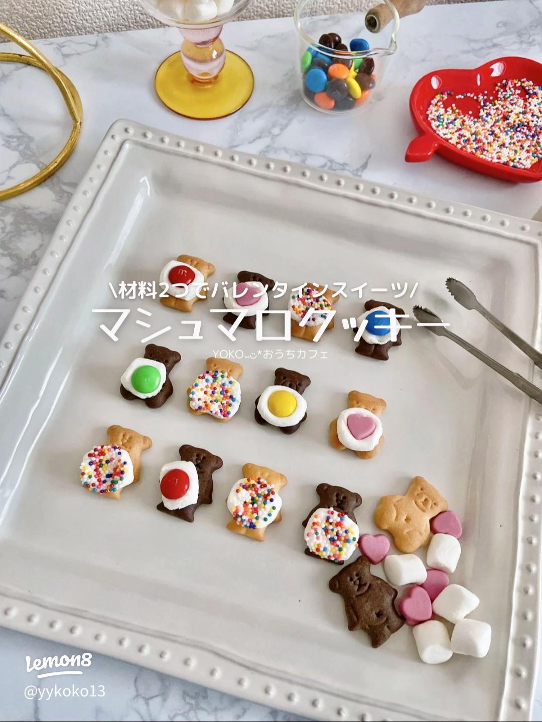 簡単可愛いアレンジ🧸♪ くまさんの焼きチョコマシュマロサンドの作り方可愛いお菓子作りBakeChocolateスモアクッキー可愛いバレンタインレシピ。
