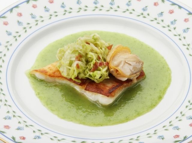 星付きフレンチシェフ☆家庭で作るフレンチレシピ☆PETITE DAURADE POÊLÉE , SAUCE CHOU DEPRINTEMPS☆レンコ鯛のポワレ、春キャベツのソース家庭で作るフレンチMadame Sourire レポート。