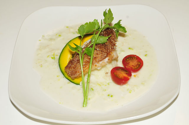 鯛のポワレ、ネギクリームソース - タカナシ クリーム・コンシェルジュ。