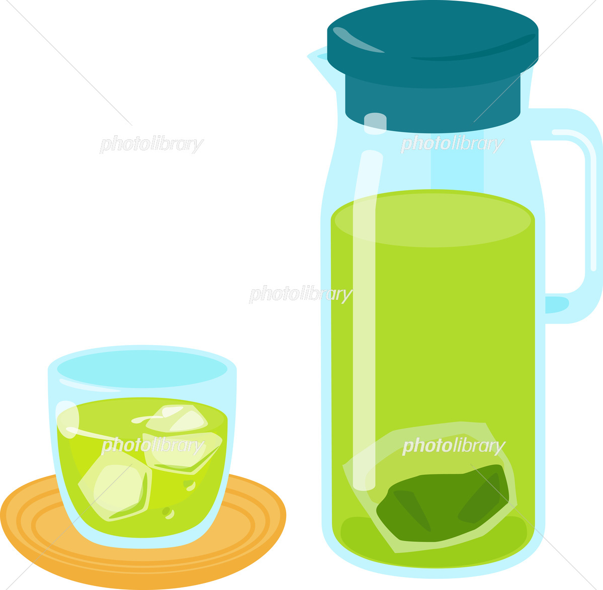 グラスとポット入りの水出し緑茶 イラスト素材6423885- フォトライブラリ。