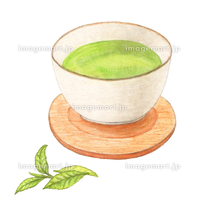 湯呑みに入った緑茶とお茶の葉 水彩色鉛筆飲み物イラスト185861748- イメージマート。