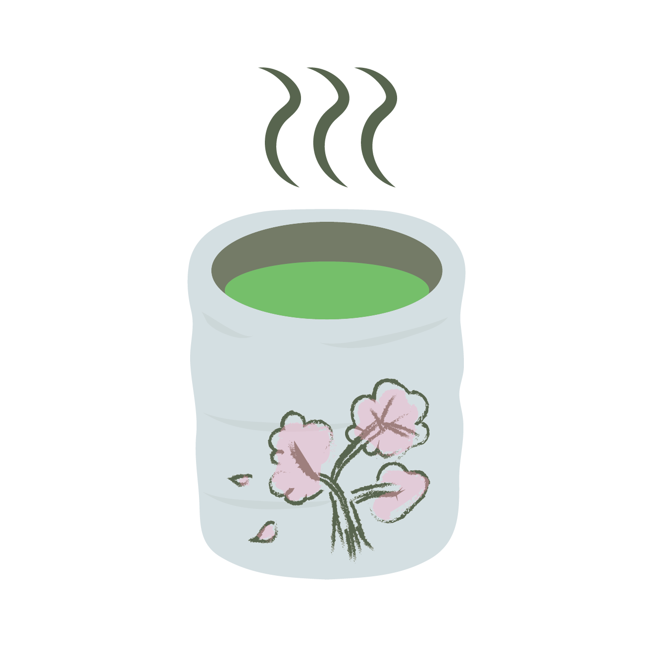 桜色の湯呑みの緑茶 - ミニマルなフリーイラスト素材 商用利用OK marutto.art。