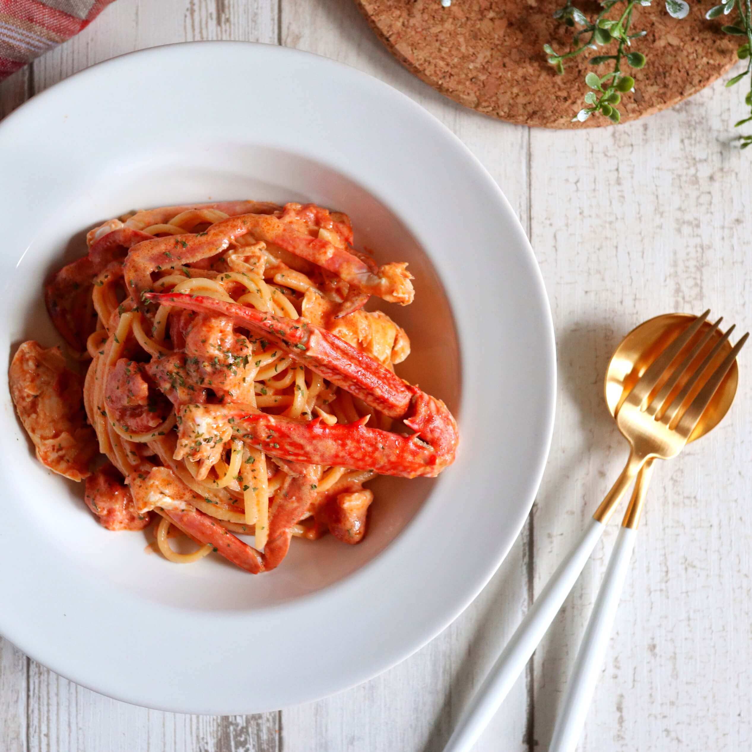 簡単なのに豪華!「ワタリガニのトマトクリームパスタ」のレシピ。