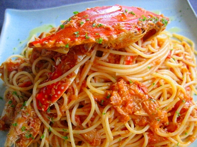 のりえレシピ: 渡り蟹のトマトクリームリングイネ。