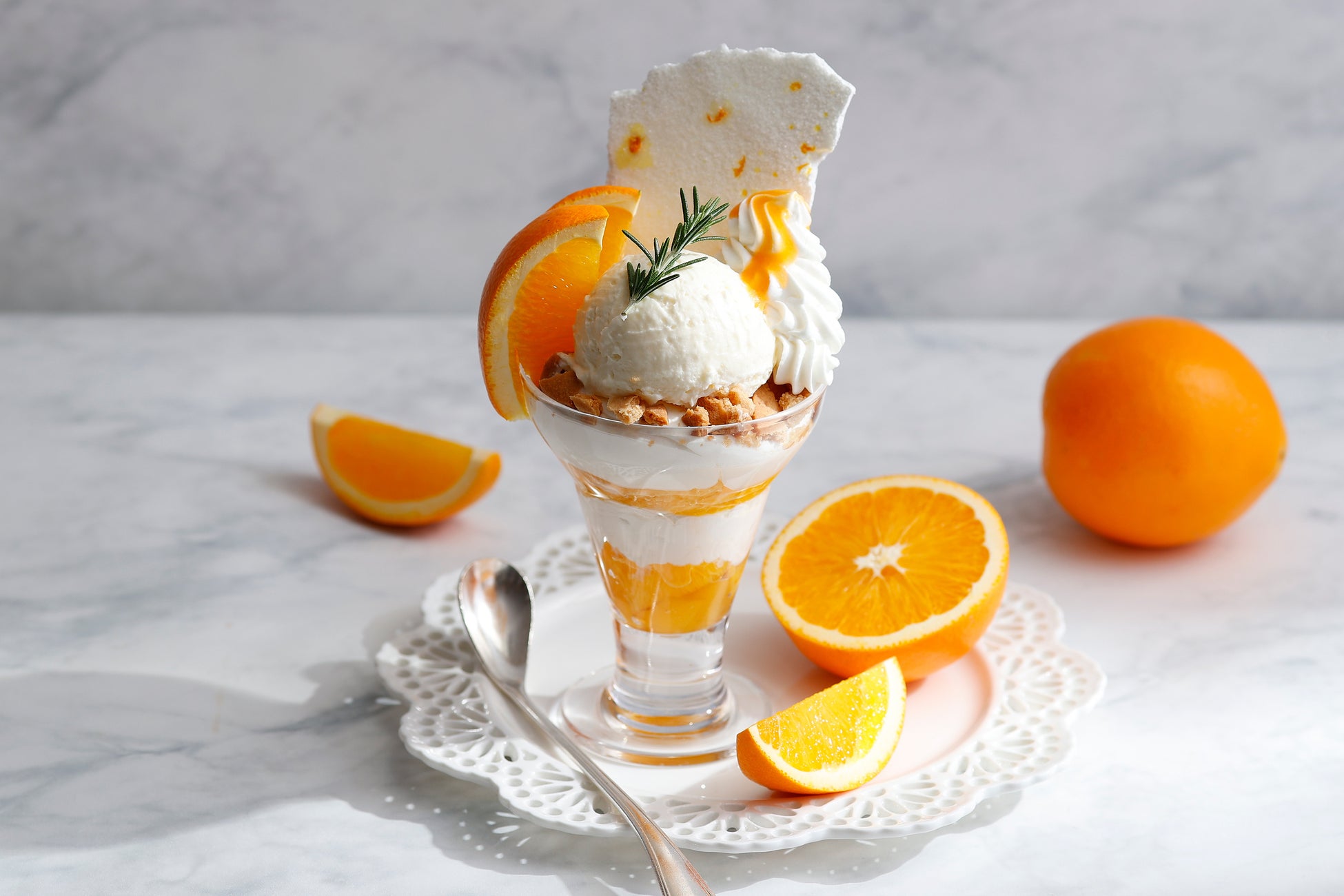 グランドニッコー東京 台場の“オレンジ色”限定パフェ、清見オレンジを丸ごと1個使用 - ファッションプレス。