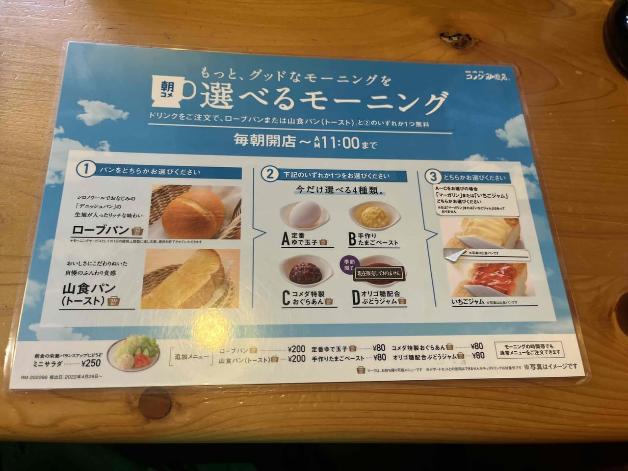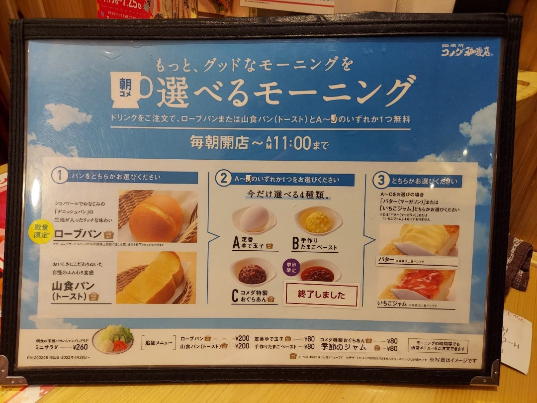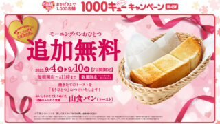 コメダ珈琲店「モーニングパン追加無料キャンペーン」9月4日 月 ~10日 日 の7日間。毎朝開店~午前11時まで。