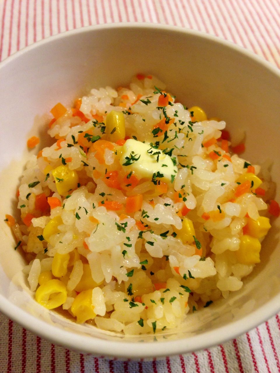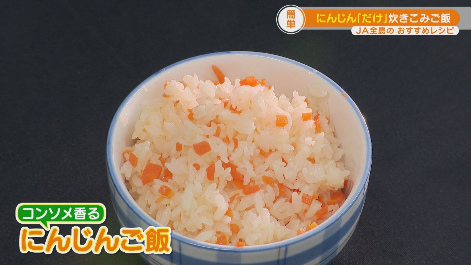 「にんじんのバター風味炊き込みごはん」レシピ ワタナベマキさん。
