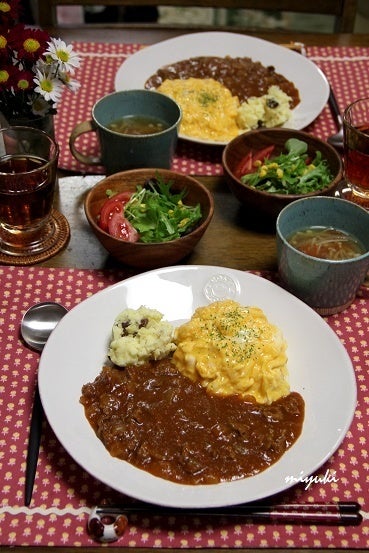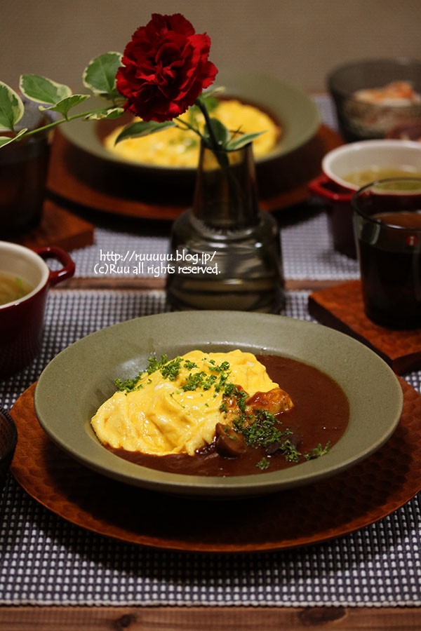 欲張りオムビーフシチュー オムライスビーフシチュー おうちカフェ おうちごはん 晩ごはん 手作り 簡単レシピランチ節約お弁当作り。