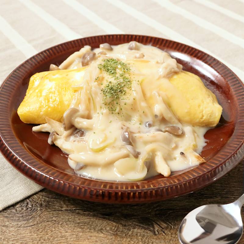 オムライス、クリームシチューソースかけハローデイ レシピサイト。
