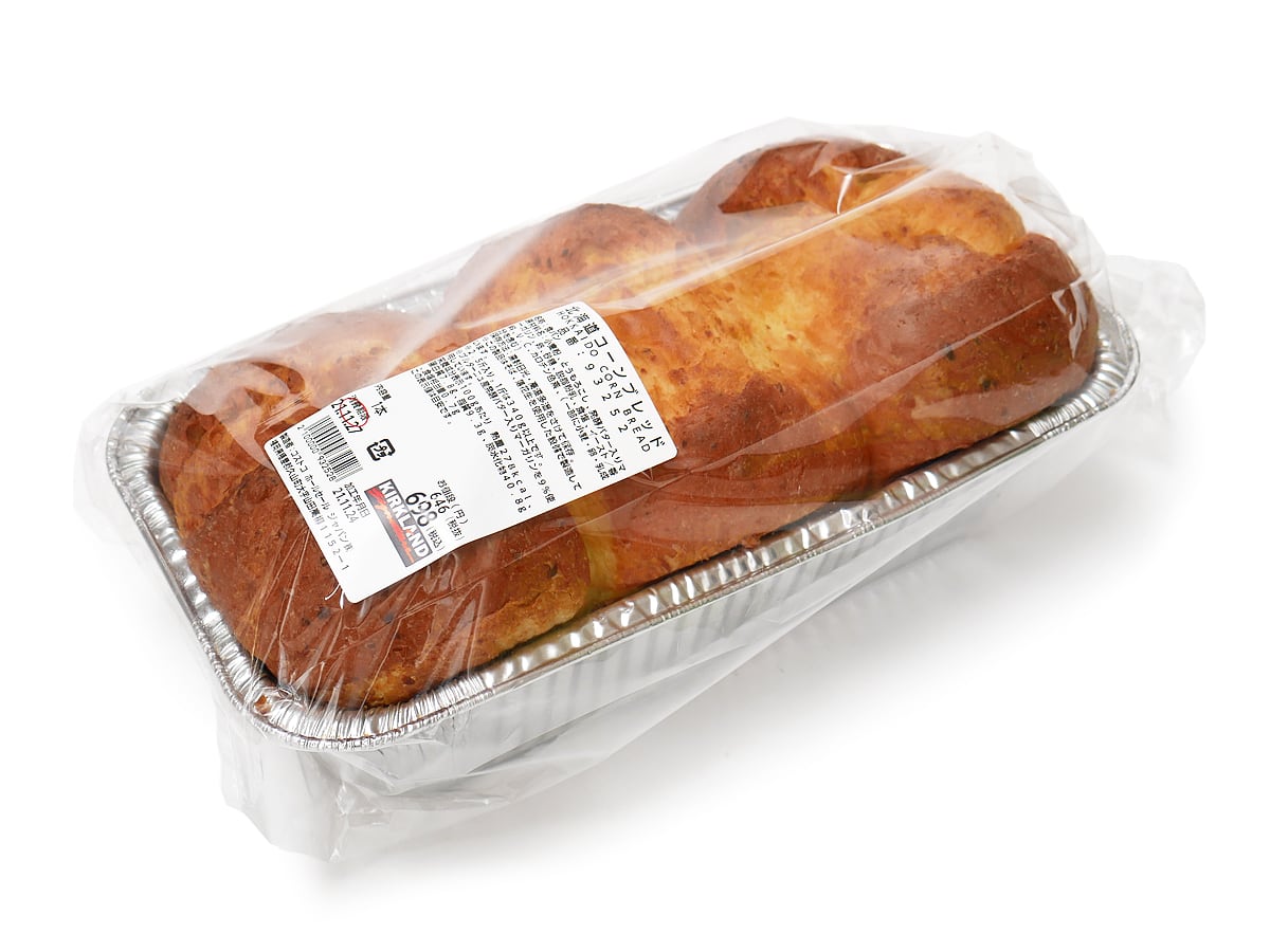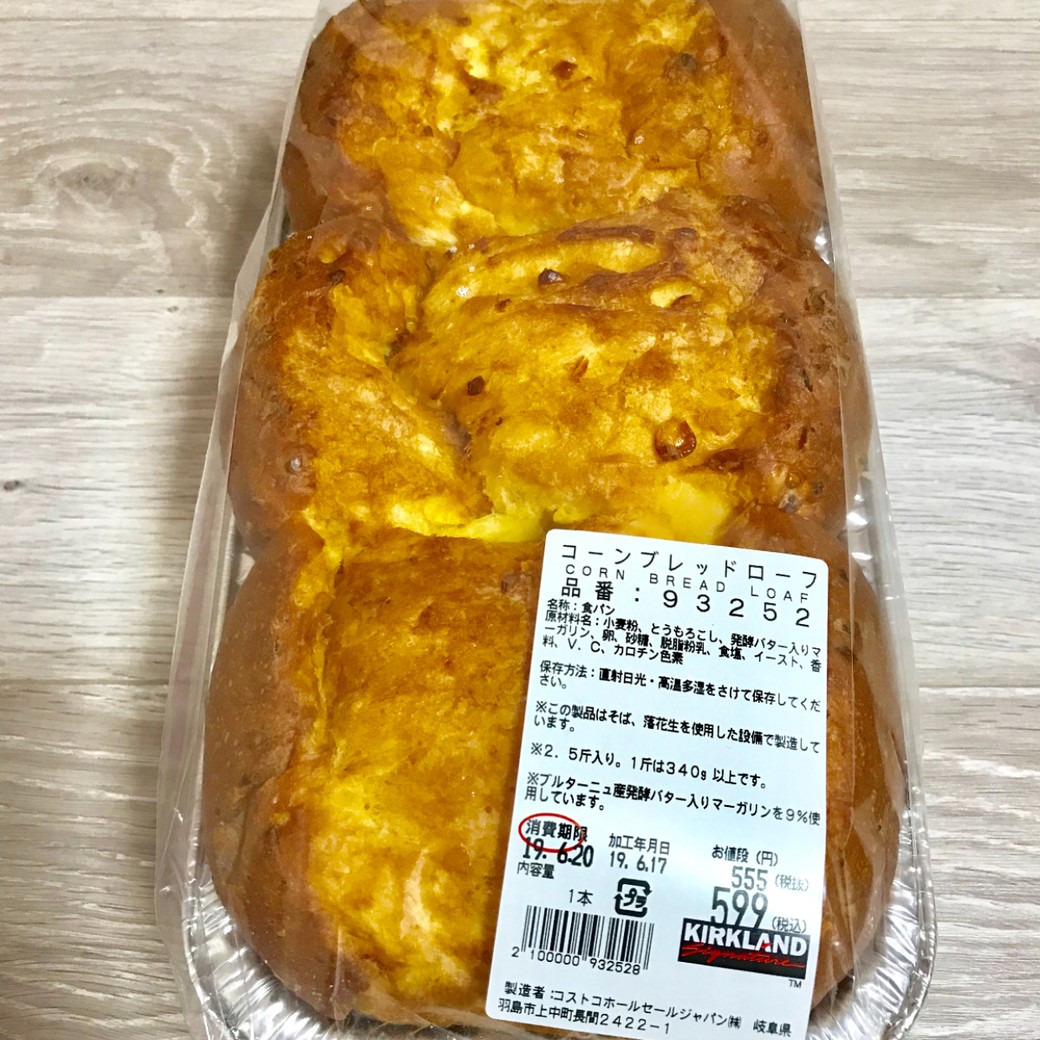 コーンブレッド ローフ✏️通常価格は、ちょっと高いのですが、セール時などに 購入するのがおススメです。食パンですが、バターが多めに使われている高級食パンのように ほんのり甘くて、とっても美味しいです。 購入初日は、ぜひそのまま食べてみてください。