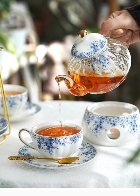 イングリッシュスタイルのアフタヌーンティーセット、フラワーティーポット、加熱ガラスのティーカップ、青と白の磁器のコーヒーカップとソーサー -AliExpress ティーカップ ティーセット おしゃれ 英国式アフタヌーンティーセット 耐熱 コーヒーポット コーヒーカップ。