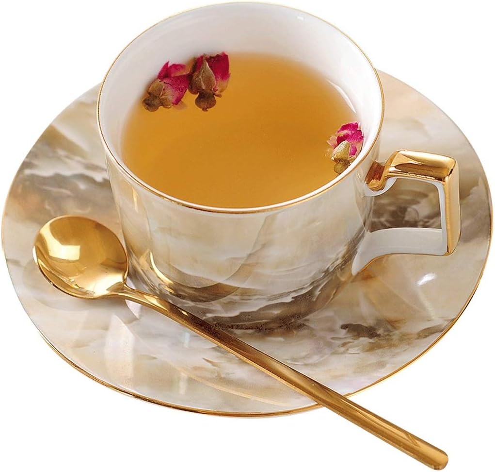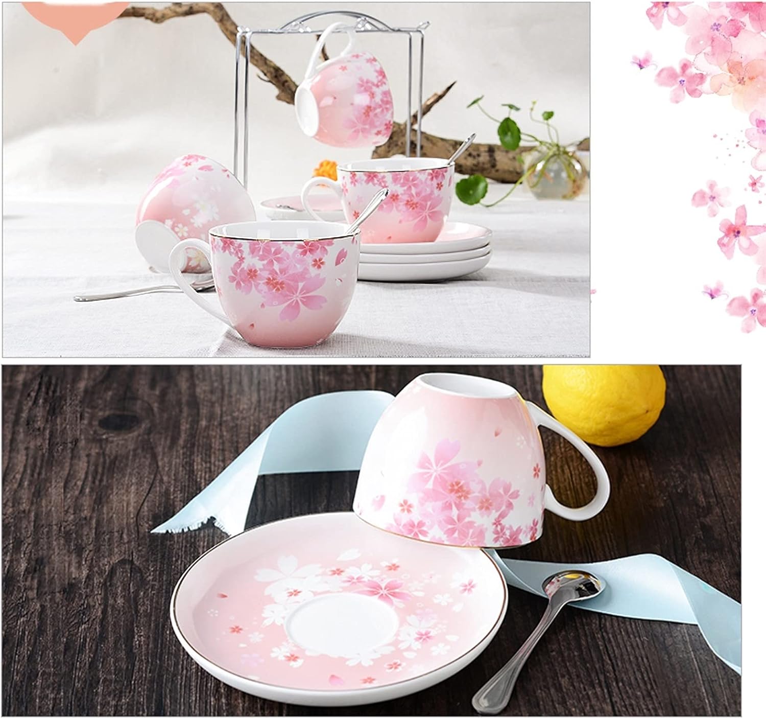 Sivro セラミックコーヒーカップホームオフィスフラワーティーコーヒーセット、ソーサーとスプーン付きの絶妙な花柄磁器テセット、アフ Amazon高級カップ&ソーサーセット コーヒーカップ&ソーサーセット ホームオフィス イングリッシュアフタヌーンセット フラワー。