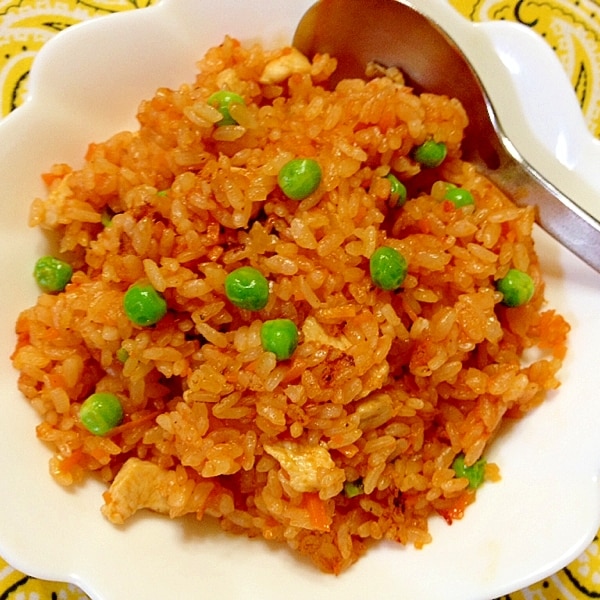 洋食屋さんのチキンライス』 ケチャップライスには中濃ソースを隠し味に : マイホームクッキングダイアリ。