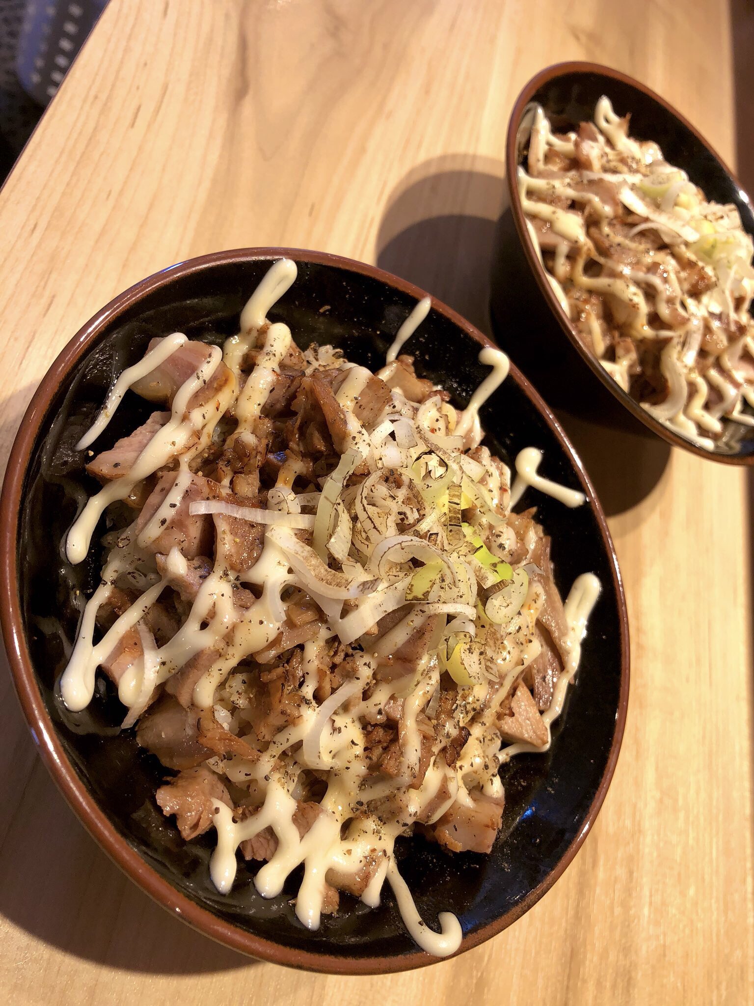 炙りチャーシュー丼 小各らーめんに使用しているレア焼豚と鶏チャーシューを贅沢にトッピングし、特製ダレをかけ炙った大人気の逸品。オープン記念として、今ならなんと税込100円です!!👏 メインのらーめんにも負けない人気上位の炙りチャーシュー丼😋✨ ぜひこの。