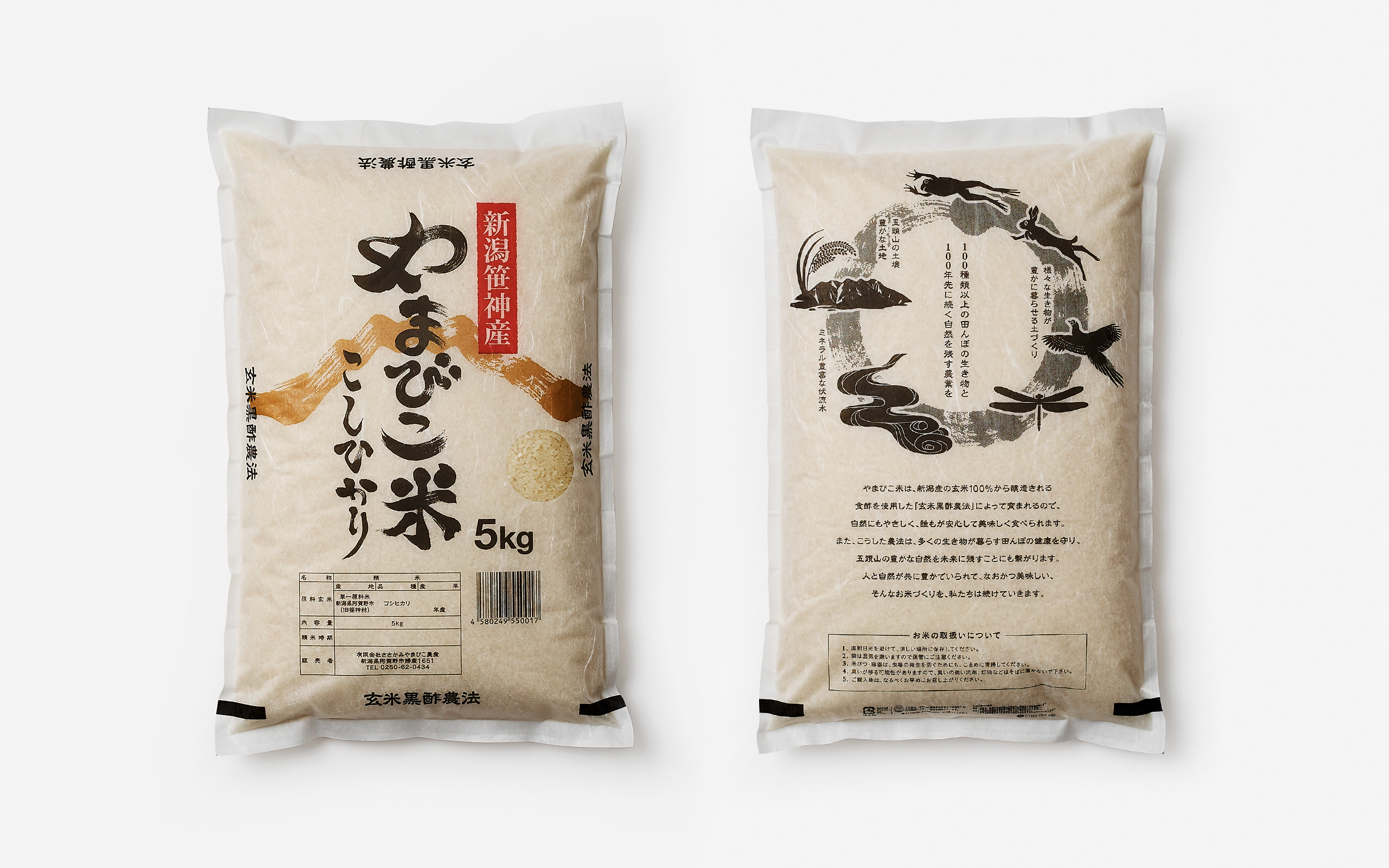 新潟笹神産こしひかり「やまびこ米」パッケージデザインKAZUKI TOMITA。