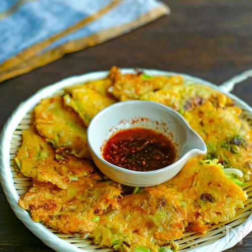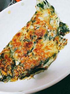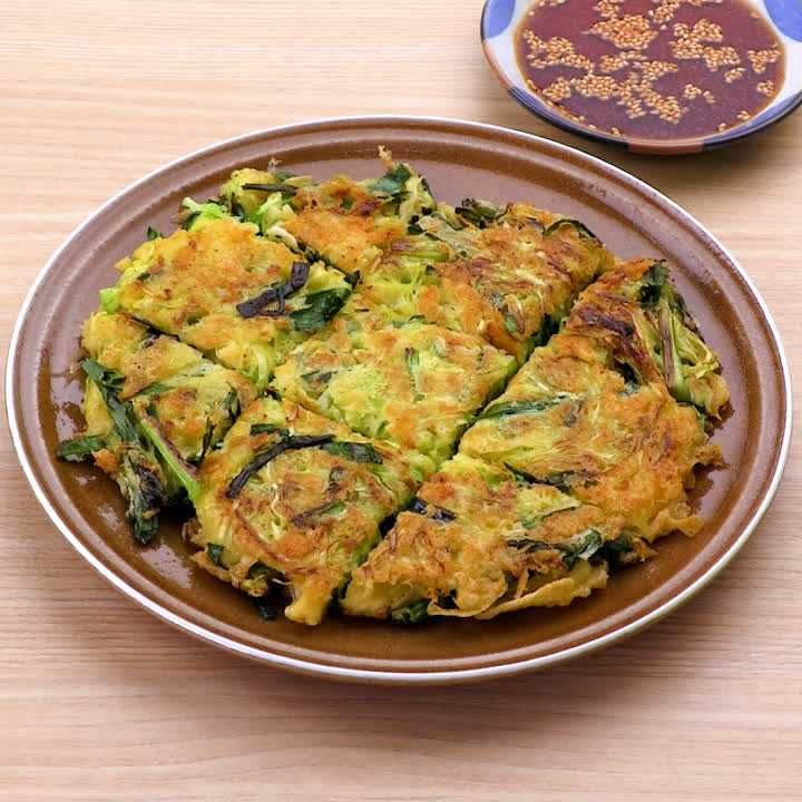 韓国料理🇰🇷 混ぜて焼くだけ!ニラとキャベツのもちもちチヂミ。