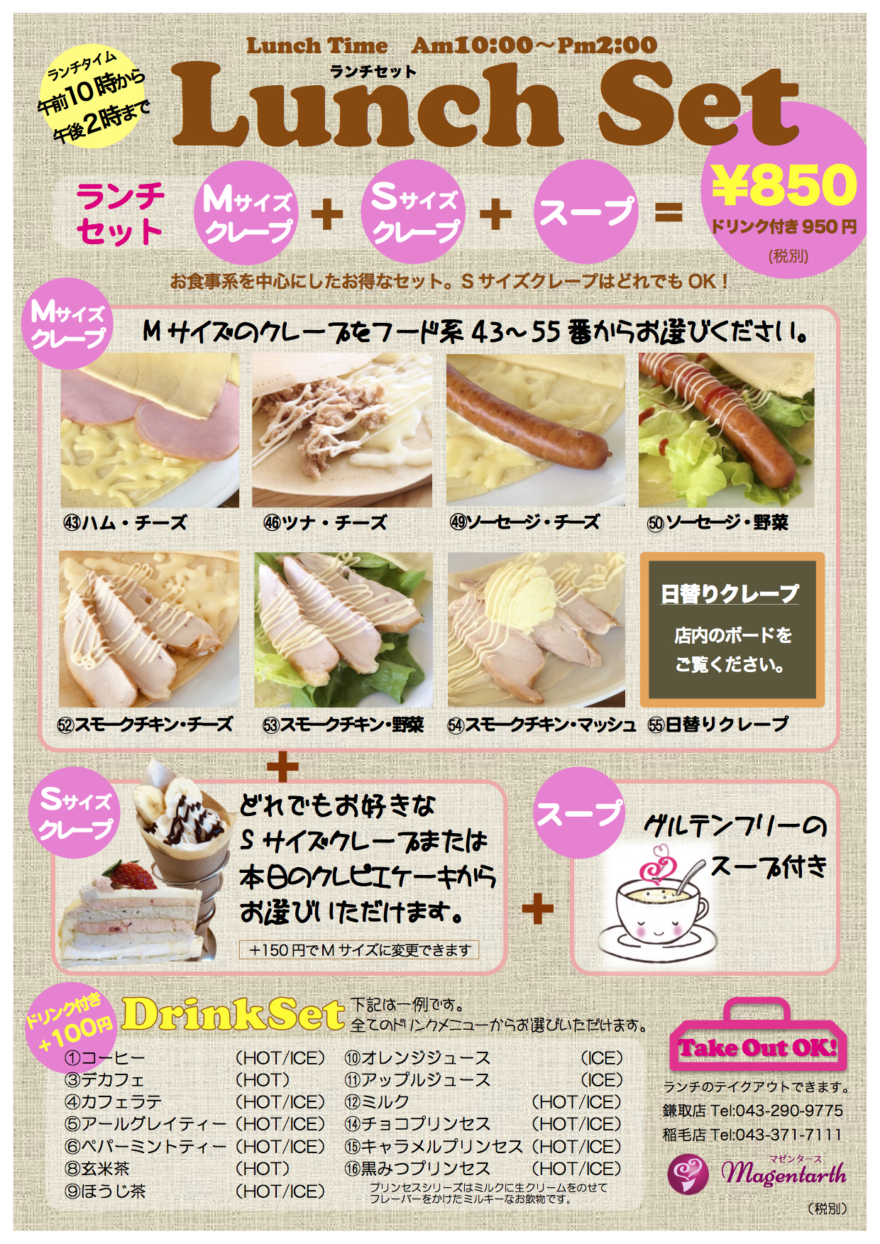 クレープです☆優しく甘い生地でお好み具材をくるっ♪。