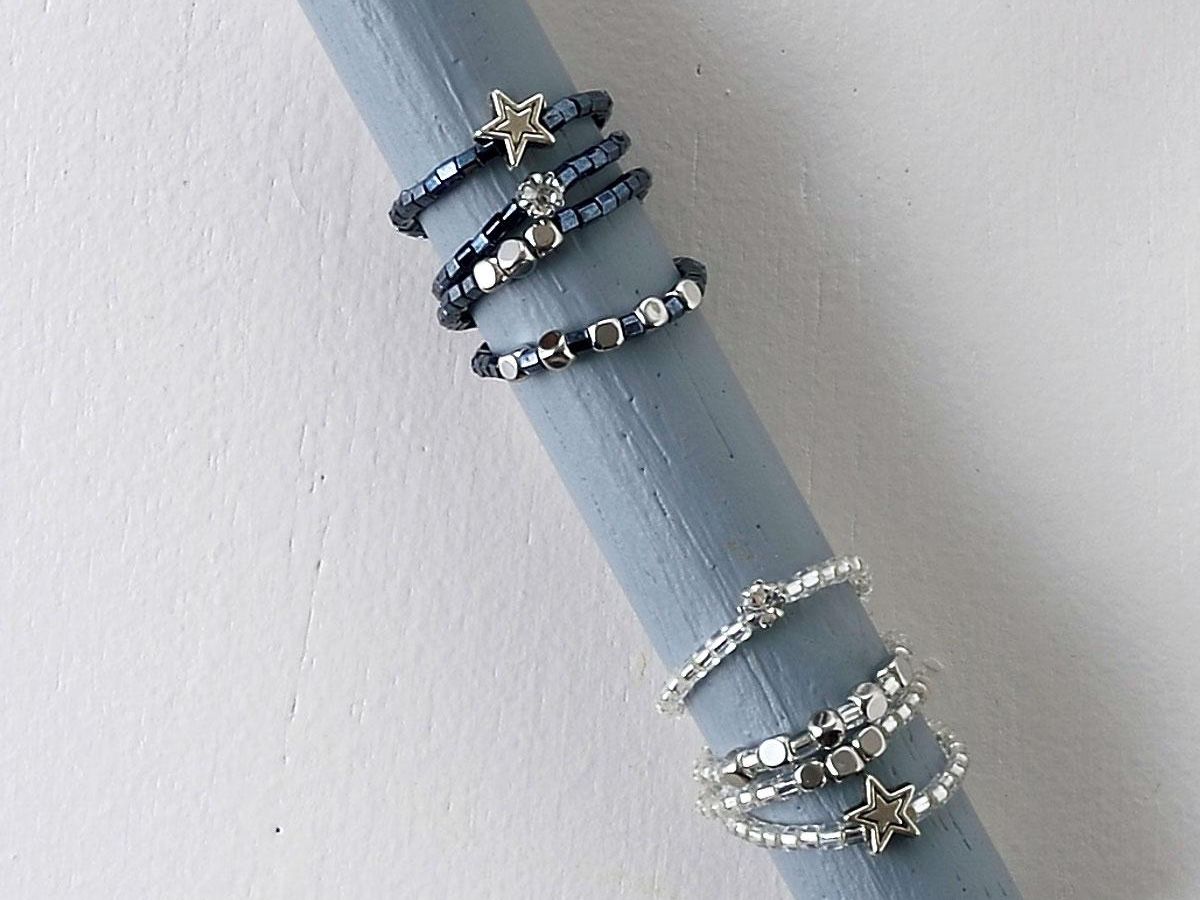 ビーズリング 8個セット 太めのビーズリング「ストライプリング」の作り方 八の字。