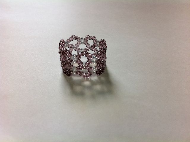 ハンドメイド ビーズ 指輪 リング ビーズ編み ネックレス ブローチ まとめ売り レースのような太めビーズリングの作り方 How to make alacy。