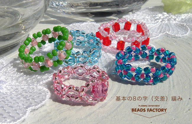 ビーズリングを作って覚えるテグス編みの基本「交差 8の字 編み」の作り方。