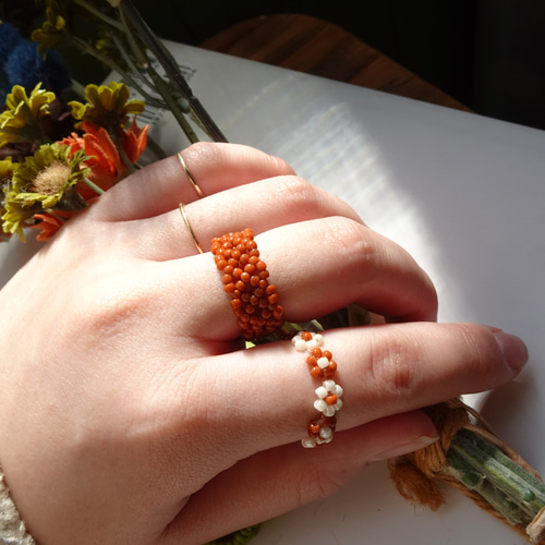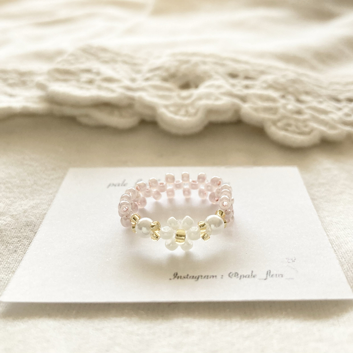 フロストビーズフラワーリング Frost beads flower ringせいかずこのビーズドール。