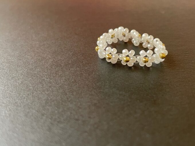 ぐるっと一周お花のビーズリングの作り方めいのハンドメイドアクセサリーブログ。