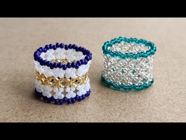 DIY💠 丸小ビーズのシンプルひし形リング作り方♪ How to make Simple Beaded Ringseasy テグス編みビーズリング!大人手作りアクセサリー初心者簡単 - YouTube。
