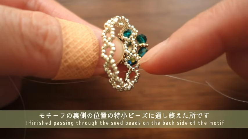 2段のお花柄ビーズリングの作り方 How to make a flower beaded ring。
