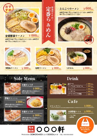 ラーメン屋_メニュー_8927のポスター無料デザインテンプレート印刷のラクスル。