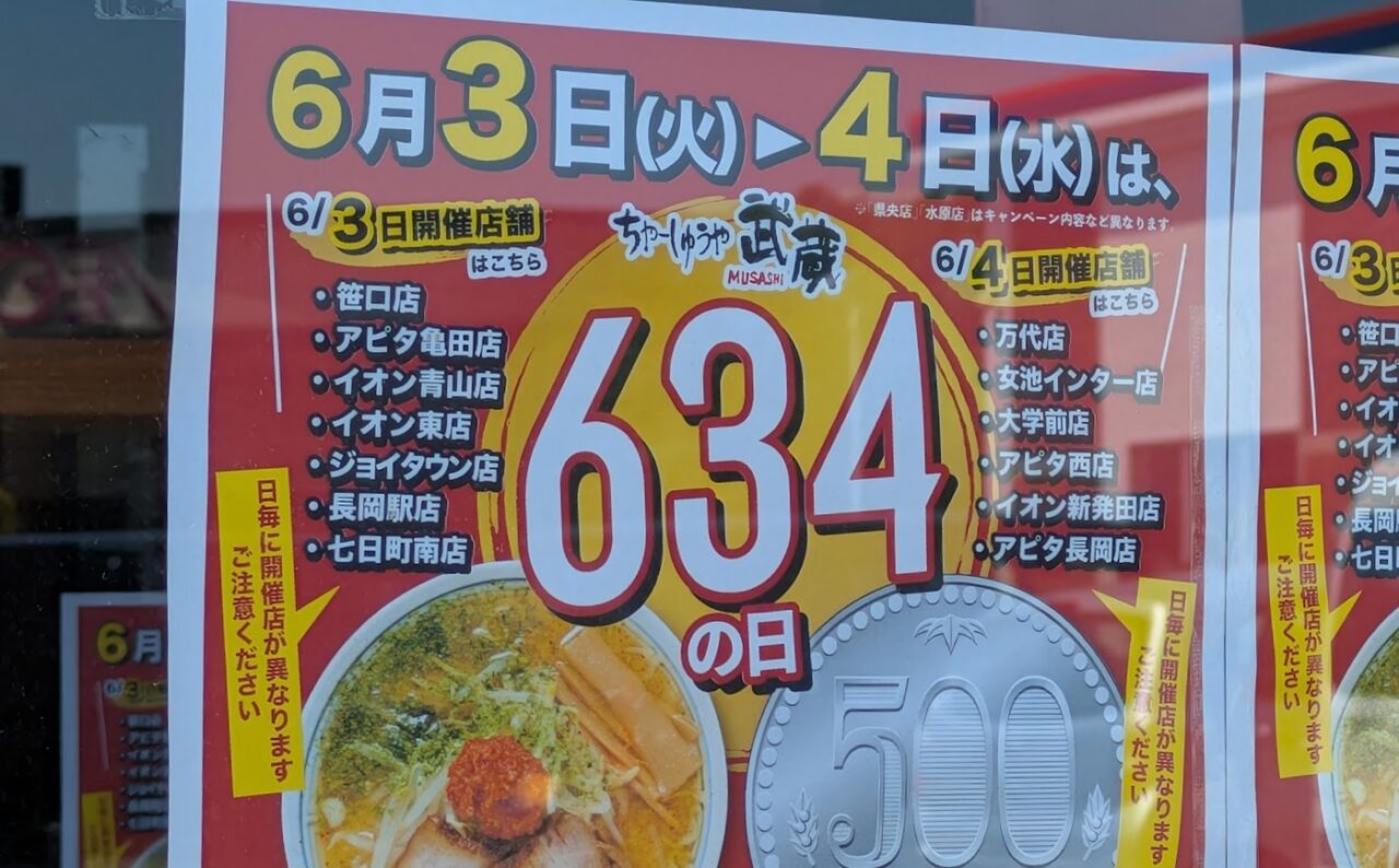 新潟市 人気ラーメン店「ちゃーしゅうや武蔵」の「からし味噌らーめん」がワンコインに!前夜祭も開催!「634の日」をお見逃しなく♪号外NET 新潟市。