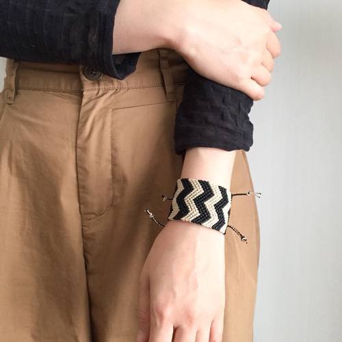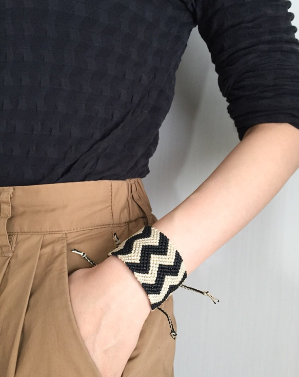 太めミサンガ◆V字波型ストライプ◆ワックスコードマクラメブレスレット メンズライク。