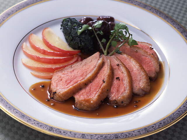鴨とりんごのソテー メープルシロップソース 江上栄子先生のレシピカナダ産メープル メイプルシロップ ケベック・メープルシロップ生産者協会。